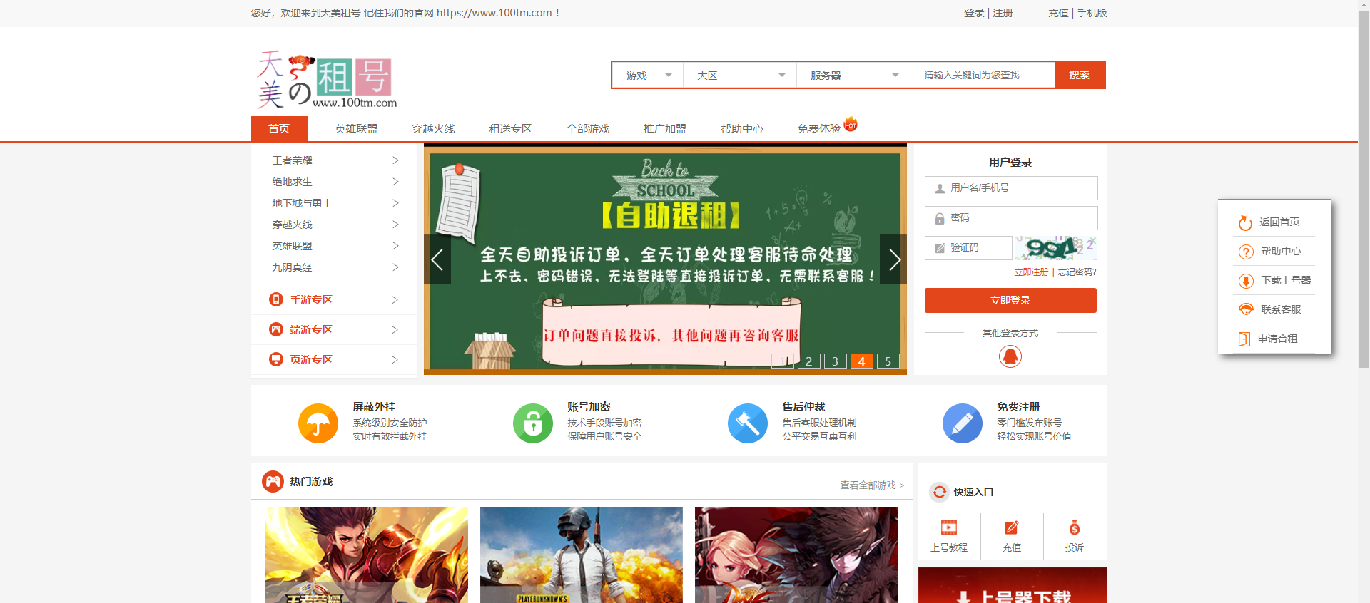 大量账号分销商家同时转租,让您的账号更好出租。账号安全保障措施,外挂强制下线,扣除租金,防止外挂密码泄露等,安全稳定! ! !